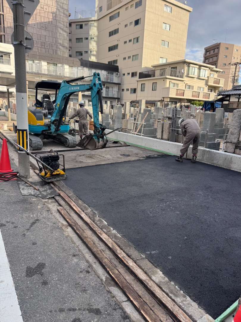 広島県広島市中区の寺院で舗装工事(アスファルト)を行いました。